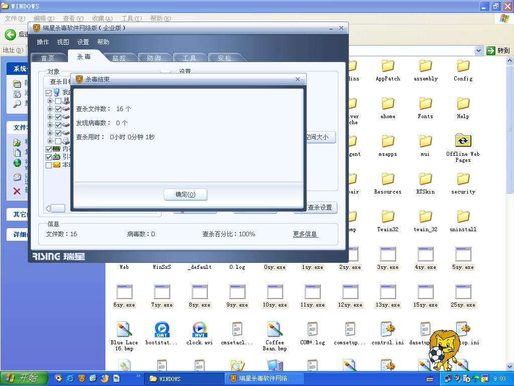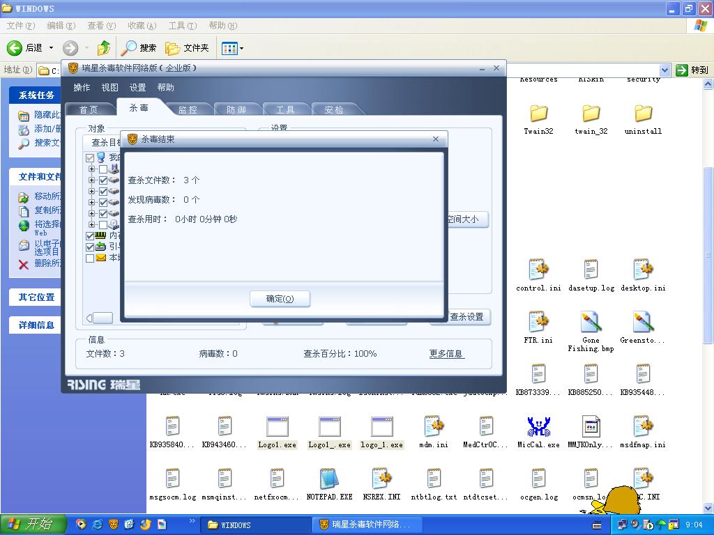 我特意用瑞星,就查那几个明显知道是病毒的文件,但他却报“病毒数:0”,,,你说,我还有什么话可以说??