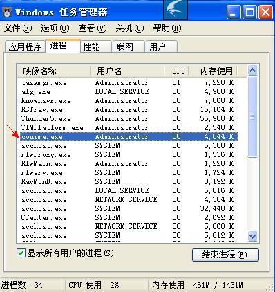 conime.exe往往在运行cmd.exe之后会出现,但是conime.exe并不是cmd.exe的子进程,conime经常会被病毒利用感染,建议删除。可以用冰遁或手动删除(删除前要结束进程)不过删除之后,在CMD就不能输入中文了