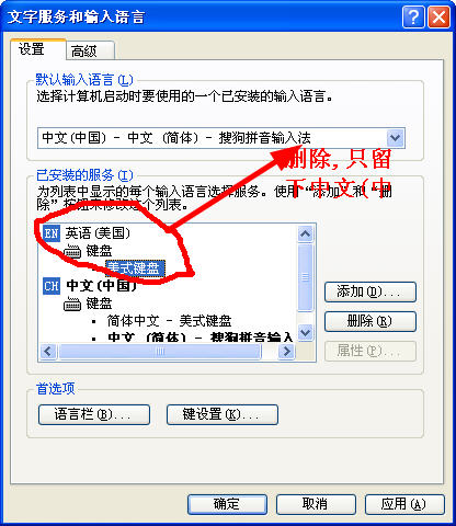 右点击CH--设置-设置如图--只留下中文(中国下面的东西就可以)