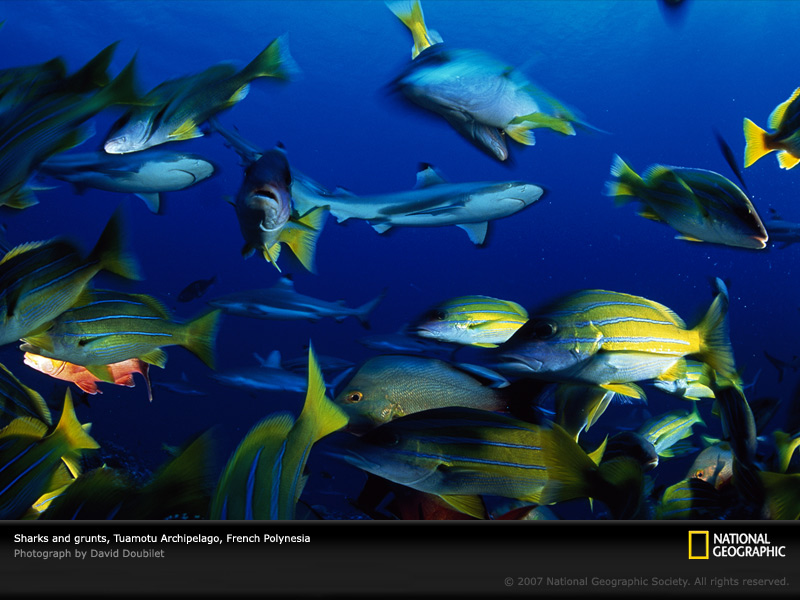 法属玻利尼西亚群岛的鲨鱼和咕噜鱼