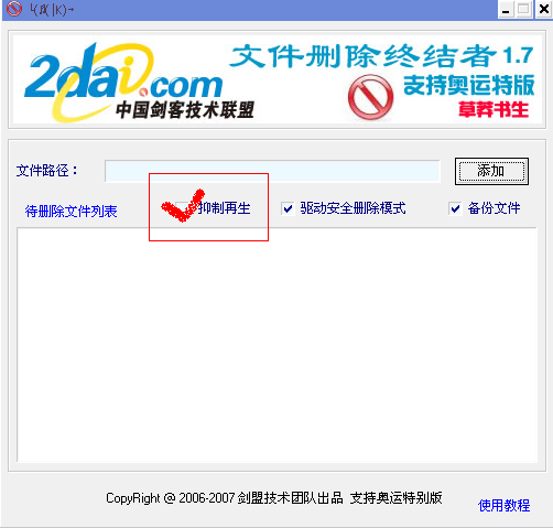 使用说明:删除时复制所有要删除文件的路径,在待删除文件列表里点击右键选择从剪贴板导入,勾选抑制再生