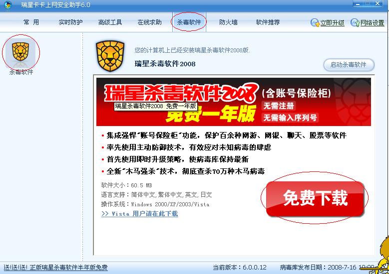 首页 » 个人产品讨论区 » 瑞星杀毒软件 » 瑞星杀毒软件2011 » 为什么现在哪个免费一年的可我下载过来就要激活码