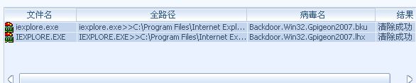 用瑞星杀出的病毒名是:Backdoor.Win32.Gpigeon2007.lhx