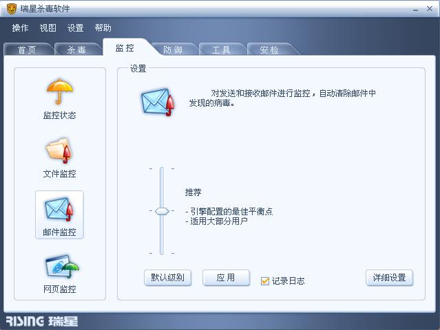 我在详细设置里想开启文件监控和邮件监控,但没有任何反映。