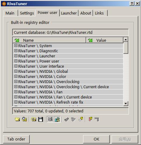 看了GeFroce5600改Quadro的文章之后,下载并安装了RivaTuner,按文章中的步骤到PowerUser选项卡下按带有齿轮的文件夹图标,但是我的RivaTuner没有这个图标:default3: 把RivaTuner从2.06到2.08装了一遍都没有,倒霉啊。