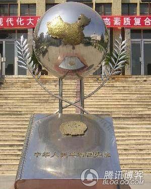 从这个复仇雕像往北走,在图书馆前,大家将会看到另一著名“景点”--X法顶个球(其实就是一本书状的东西--X法,上面托着一个地球。