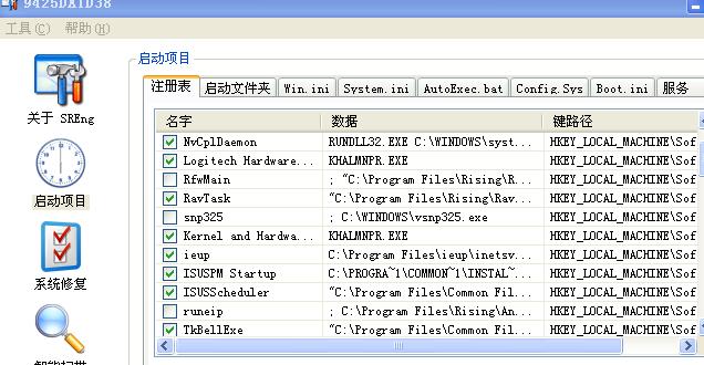2.删除重启后使用SREng修复下面各项: 启动项目 -- 注册表之如下项删除: