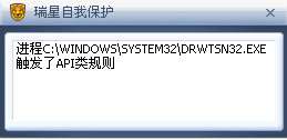 一直以来都是用瑞星防火墙的“漏洞扫描”来给系统漏洞打补丁的,但是昨天却发现已经不能用了。现象是:点击瑞星防火墙进入防火墙主界面后,再打开“漏洞扫描”标签页,当点击右上角的“瑞星漏洞扫描”时即出现如图所示的提示,关闭这个提示后就退回到瑞星防火墙的主界面而不能实现给系统漏洞打补丁的目的(点击左下角的“开始扫描”,故障相同)。