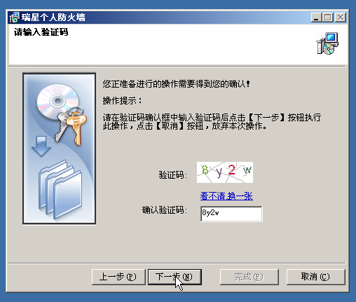 当关闭上面的提示对话框后,瑞星防火墙会在屏幕的右下角出现如下图的提示。