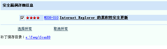 上图是用瑞星杀毒软件进行漏洞扫描后发现的唯一一个漏洞,其名称是: MS08-010。而且在升级安装补丁(见下图)并重启电脑后,再次用瑞星杀毒软件进行漏洞扫描,该漏洞依然会存在。