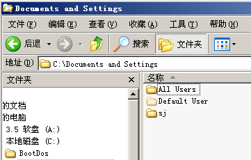 3、笔者的“C:\Documents and Settings”路径下只有三个文件夹,并没有版主说的“C:\DOCUME~1\ADMINI~1\”文件夹,如图2所示:
