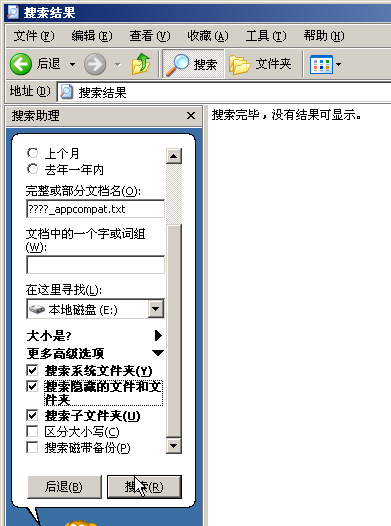 至此,在版主所说的“C:\Documents and Settings”中均未找到形如“????_appcompat.txt”的文件。