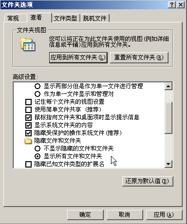 将文件夹选项这张图里的“隐藏受保护的系统文件”前的勾去掉。