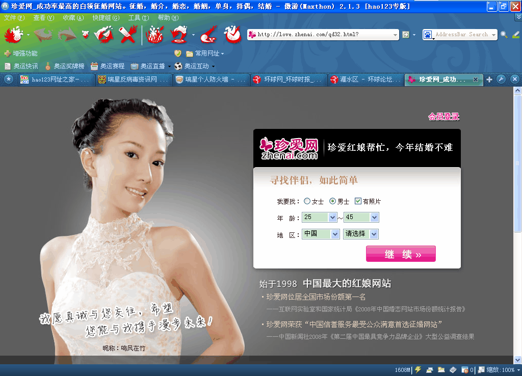 最近上环球网看新闻,点击任何新闻,浏览器都强制转向一个叫珍爱网的求婚网站!:default11: