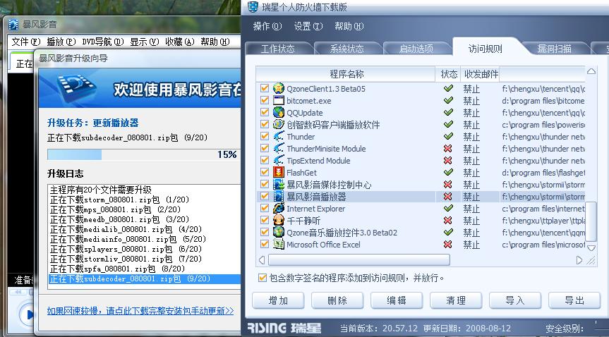 我没有关闭防火墙保护,也禁止了所有的风暴影音上网程序,我相信自己不会弄错这些的。