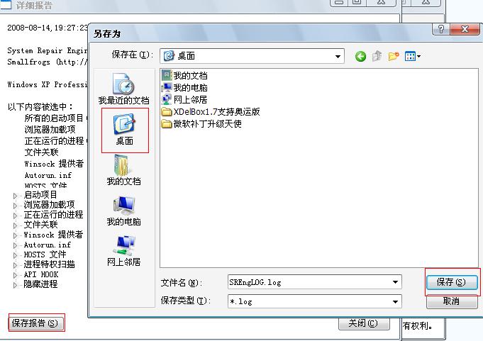 把报告保存到桌面之后,在把该日志上传到反病毒论坛板块下,按照箭头路径操作。