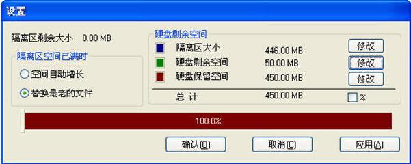 隔离区空间已满时,选择【空间自动增长】或【替换最老的文件】