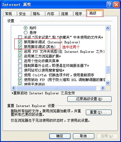 访问者所使用的浏览器不能完全支持页面里的脚本,形成“脚本错误”。遇到“脚本错误”时一般会弹出一个非常难看的脚本运行错误警告窗口,而事实上,脚本错误并不会影响网站浏览,因此这一警告可谓多此一举。要关闭警告则可以在浏览器的工具菜单选择Internet选项,然后单击高级属性页。进入到浏览标签,并选中“禁止脚本调试”复选框,以后你就不会再收到这些警告了。