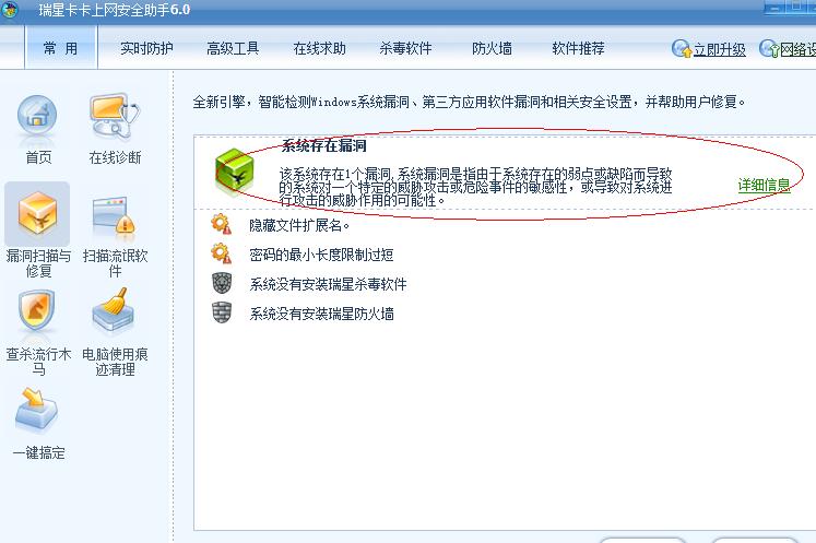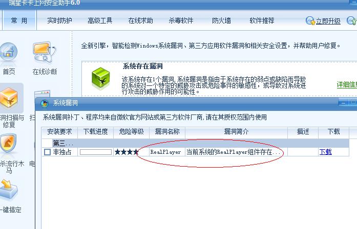 瑞星卡卡在vista sp1中的问题,我根本就没有安装过REAL,也没有安装什么完美解码之类的软件,竟然检测我系统有漏洞。。