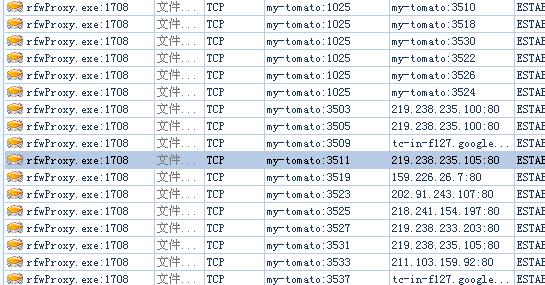 我发现最后这些IP中有很多都跟我rfwProxy建立ESTABLISHED连接