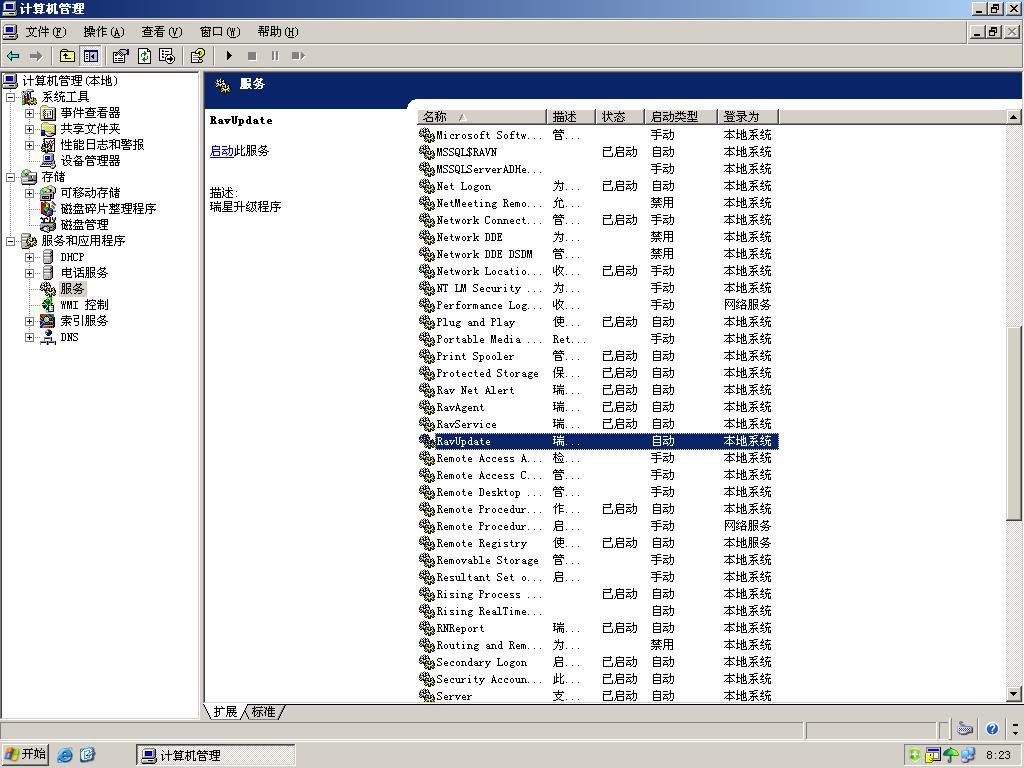 所有客户端包括服务端的Ravupdate服务都不能自动启动,导致无法升级。服务设置的是自动启动,不知道什么原因开机就是起不来,手动启动以后一会儿有自动关闭了,希望告诉可以解决。
