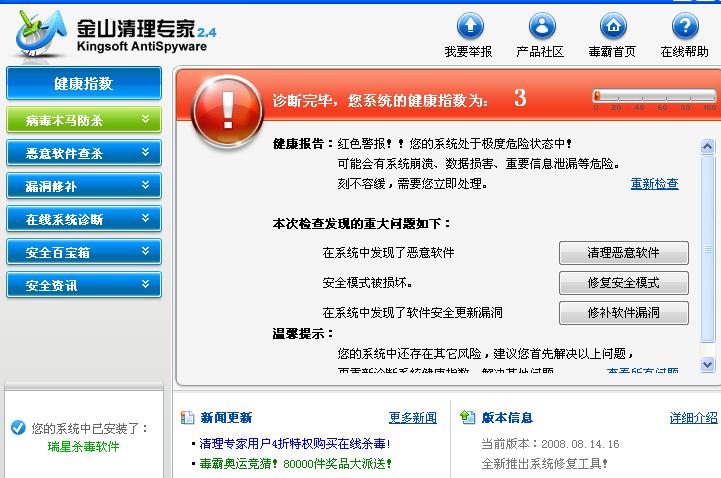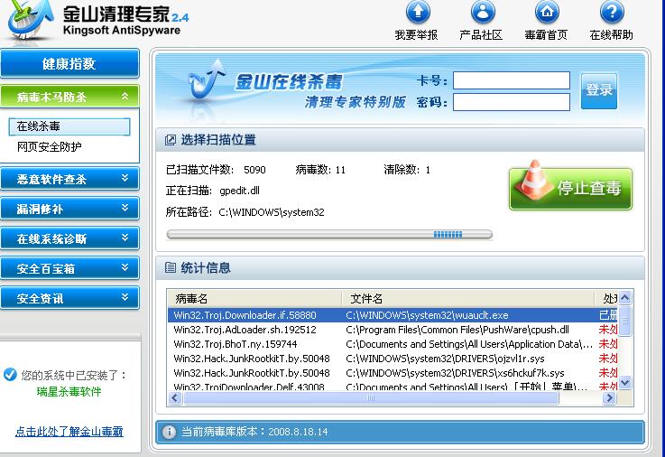 首页 » 个人产品讨论区 » 瑞星杀毒软件 » 瑞星杀毒软件2011 » 反复有毒,瑞星不能开,安模破坏
