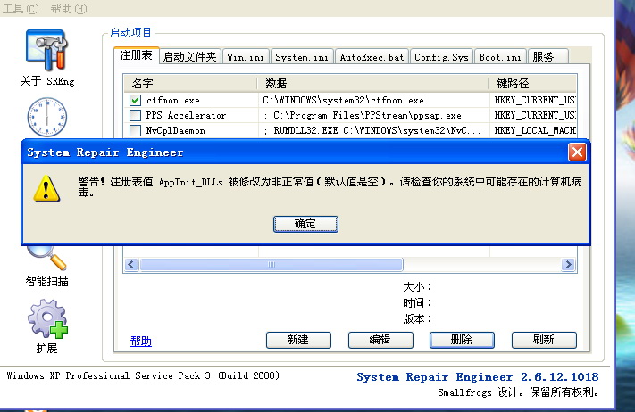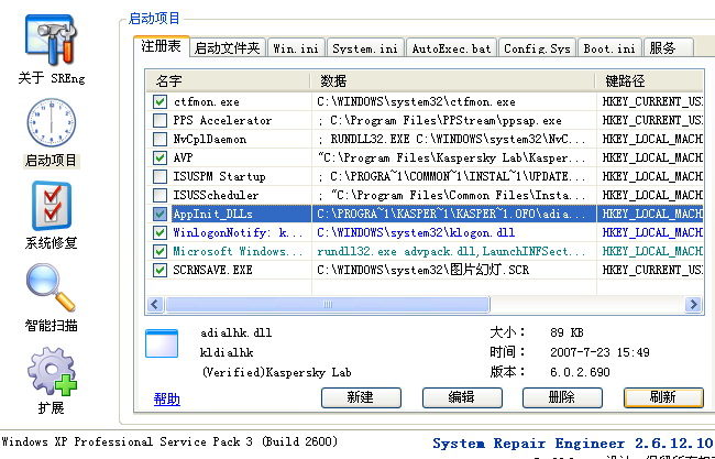 2.删除重启后使用SREng修复下面各项:
