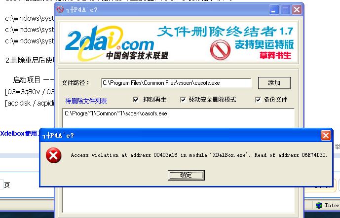 从剪贴板导入不检查路径,导入后在要删除文件上点击右键,选择立刻重启删除,电脑会重启进入DOS界面进行删除操作。运行xdelbox前最好卸载所有可移动存储介质(包括U盘,MP3,手机存储卡等)。