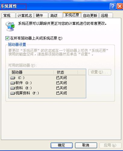 他最后的原因应该不是关闭了系统还原,因为图是乱的:default3: