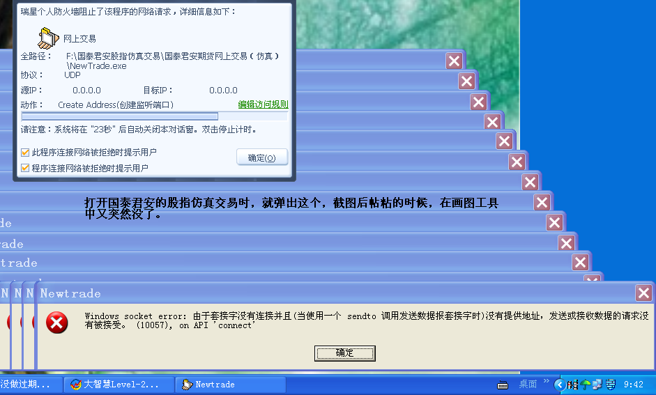 这个软件安装的时间是今年二月下旬,当时用了半个月的,没有什么问题.上星期一时也用过,不见有问题.今个儿却出这个问题,刚才又试着打开,一样是这样子弹出好多个窗口.