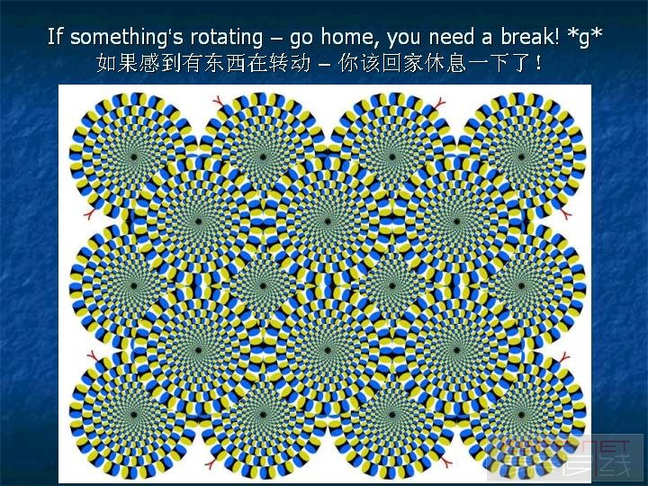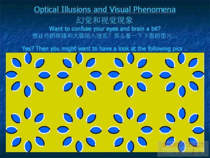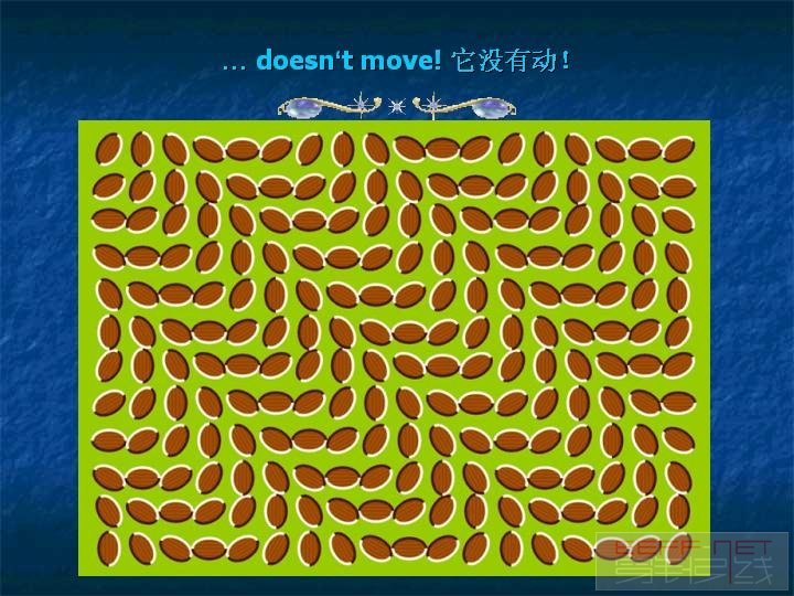 看到那些本来是静止的图片,但是由于每个图案上都有黑白的边,而且都是有规律的,所以看起来像是在动一样。。。:default7: