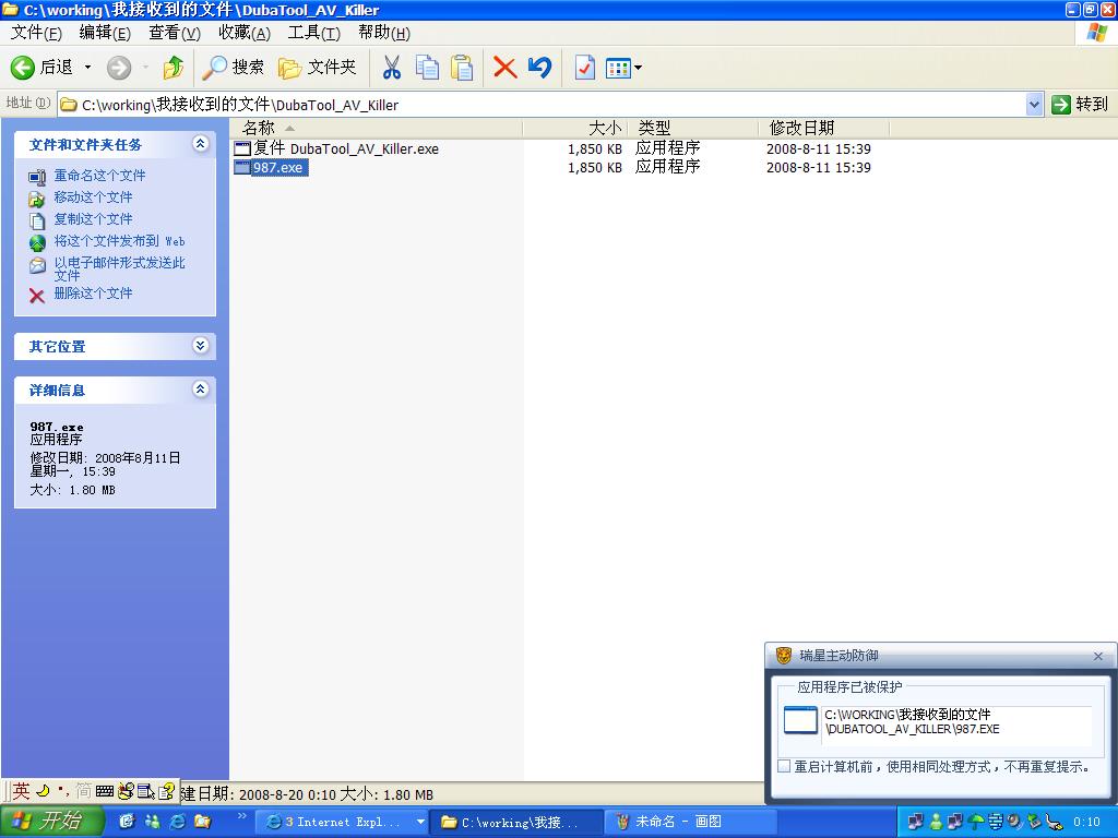 瑞星显示987exe受到保护,但是exe仍旧被删除。