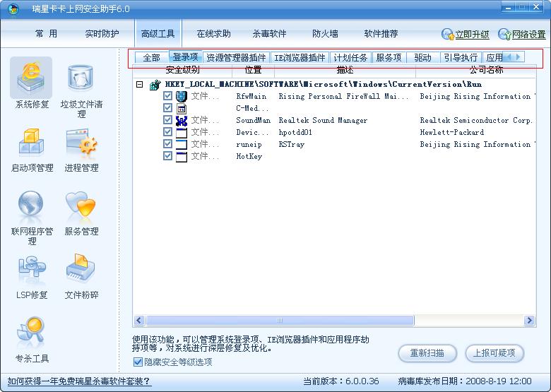 如图,像这样要看后面的某个选项时(例如文件关联选项)只能一个一个的移动过去,当要在各个选项间切换时这样做费时费力,这点没有卡卡5.2版的界面来得方便轻松。