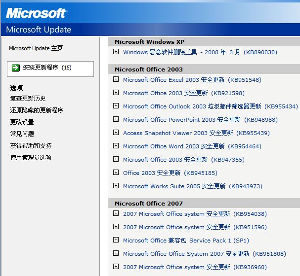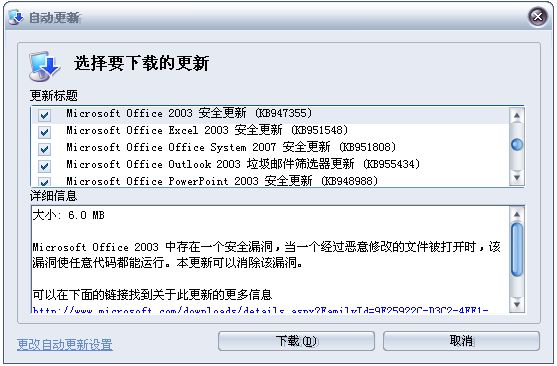 自动更新显示的是一堆Microsoft Office 2003的补丁。