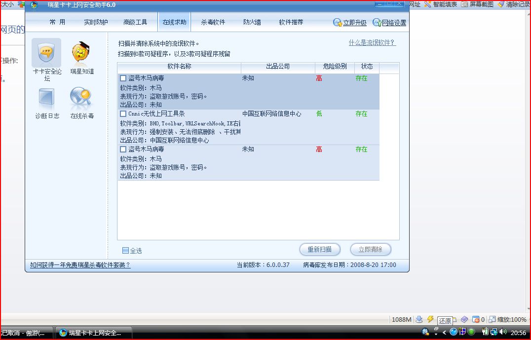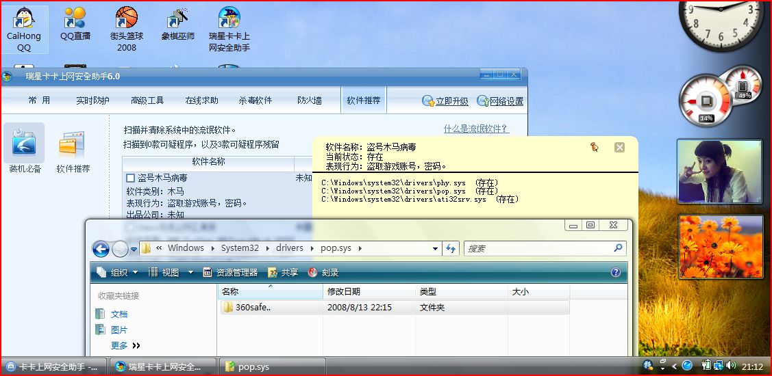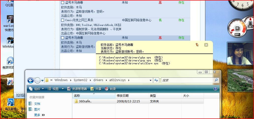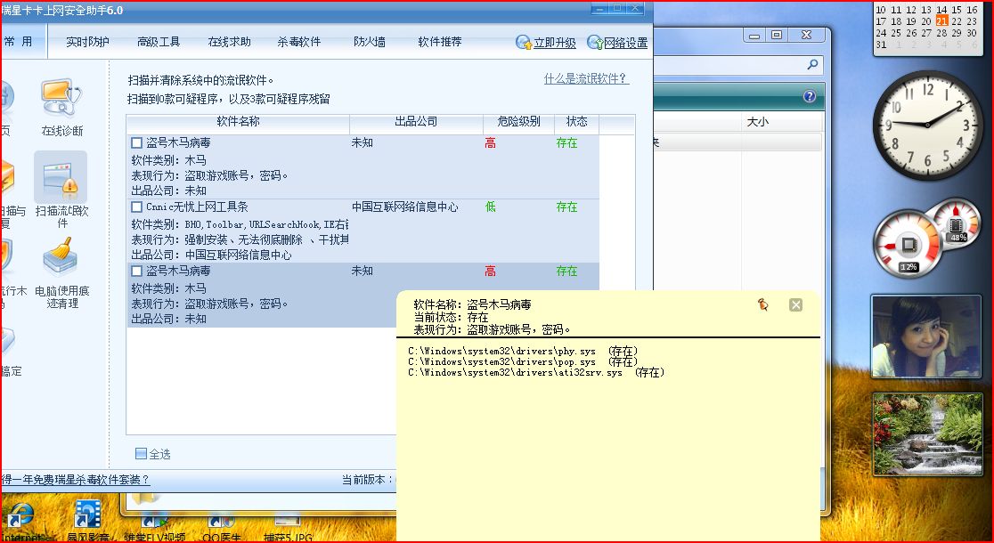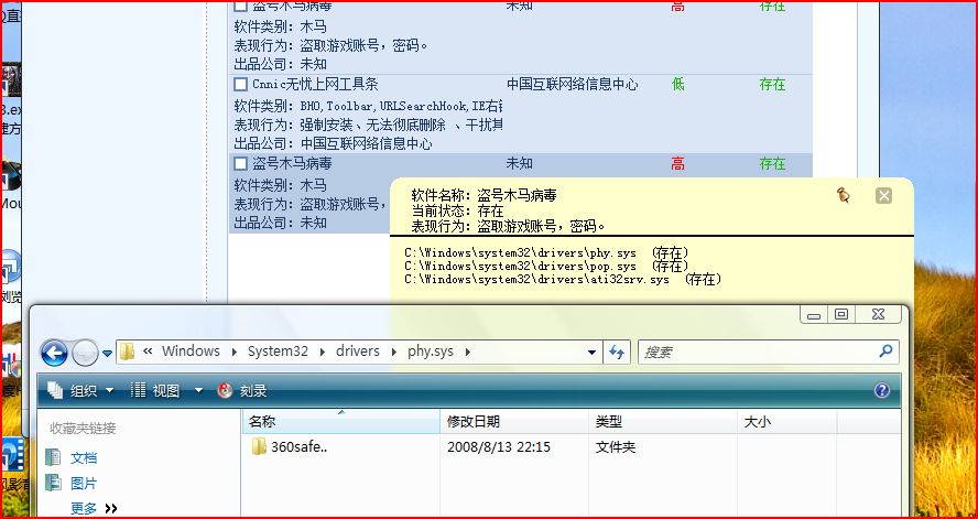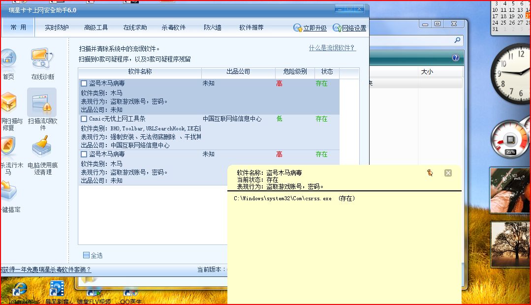 一扫居然有木马 本人上网习惯一向还好~一般都去正规网站且开杀软 ,做测试都是在虚拟机里做的~不想竟惹马上生
