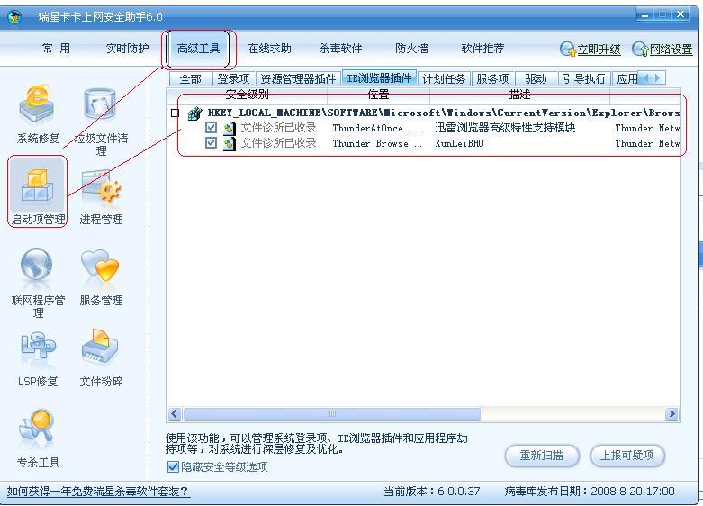 汗死 瑞星居然让用户自己识别注册表