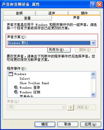 查看声音方案上是不是windows默认。