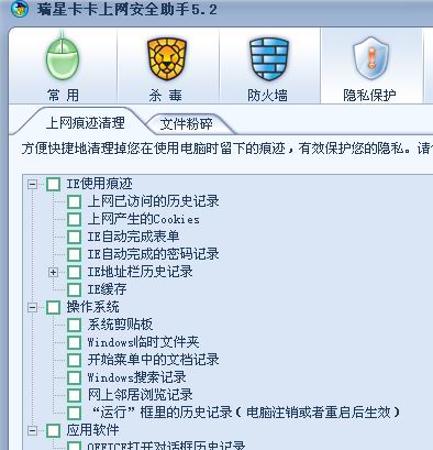 卡卡6.0出了5.2的[隐私保护]选项吗??上网痕迹清理~