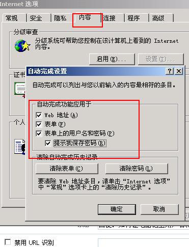 点浏览器上的工具---INTERNET选项,在内容里点自动完成