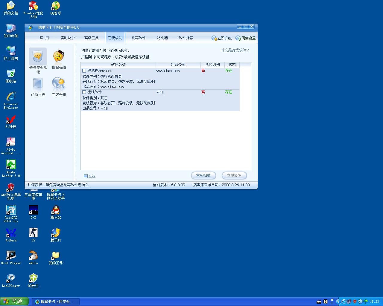 1、清楚后,重启计算机流氓软件还在。比较顽固。我已经将卡卡升级到最新版了。