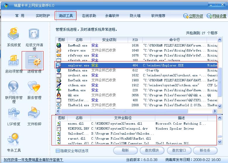 用卡卡助手查找注入的DLL或扫SRENG日志