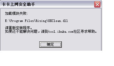 卡卡安装后,IE工具栏可以看到卡卡,里面的广告拦截和痕迹清理,都一直可以用.自从用了六系列,就一直有问题.因为升级问题相对比较重要,而且,打开助手软件,里面痕迹清理的功能也能正常使用,所以,没有去管这个IE工具栏的问题,今天卡卡升级总算是自己正常了.这个问题就搬出来请大家来看一下.具体情况是:点击IE-安全助手-痕迹清理,出现以下提示,重装卡卡也没有用,重装IE7也没有用.