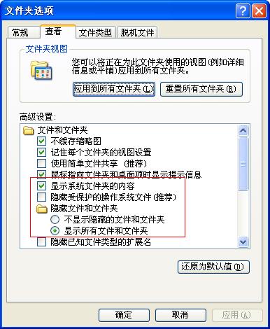 在文件夹选项中打开“显示所有文件和文件夹”的选项,但在C:\Documents and Settings\Administrator中仍找不到Local Settings的文件夹。同时也按照瑞星社区中的“有关提示“介压后杀毒”的介决方法”一文中的办法试过也没用。