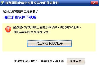 360杀毒是大地痞,当然不允许瑞星的出现了