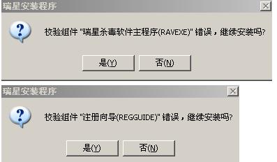 求救高手 瑞星杀毒软件主程序RAVEXE错误.和校验组件REGGUIED错误