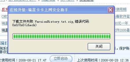 今天瑞星卡卡安全助手又升不了级了!!!又是错误!!!!