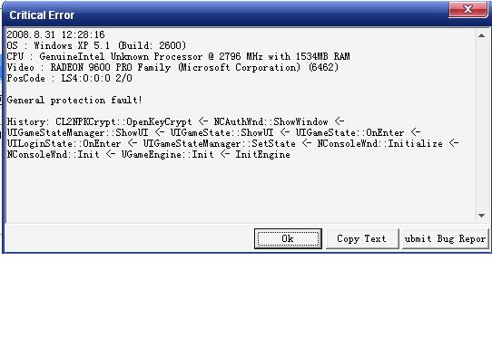 History: CL2NPKCrypt::OpenKeyCrypt <- NCAuthWnd::ShowWindow <- UIGameStateManager::ShowUI <- UIGameState::ShowUI <- UIGameState::OnEnter <- UILoginState::OnEnter <- UIGameStateManager::SetState <- NConsoleWnd::Initialize <- NConsoleWnd::Init <- UGameEngine::Init <- InitEngine