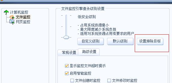 监控--文件监控--详细设置--设置排除目标--然后导入文件或目录就可以了..