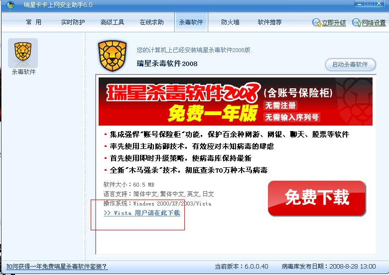 如果不能下载,可不可以给我一个FTP或者HTTP的下载方式下载免费一年版的。我安装了卡卡6.0