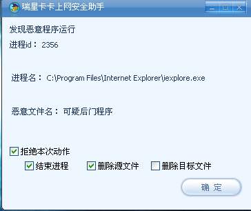 瑞星卡卡总是提示有可疑后门程序,瑞星也查杀不出来